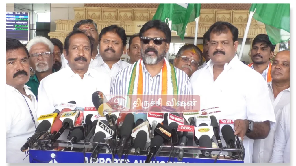 பேட்டின் போது திருச்சி மாவட்ட தலைவர் ரெக்ஸ் மற்றும் கட்சியினர் உடன் இருந்தனர்.