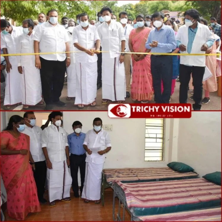 திருச்சி காஜாமலையில் உள்ள பாரதிதாசன் பல்கலைக்கழக வளாகத்தில் கொரோனா நோயாளிகளுக்கான 200படுக்கை வசதிகளுடன் கூடிய அரசு சித்தா கொரோனா புத்துணர்வு மையம் அமைக்கப்பட்டுள்ளது. அந்த புத்துணர்வு மையத்தை ஊரகவளர்ச்சி மற்றும் உள்ளாட்சித்துறை அமைச்சர் கே.என்.நேரு மற்றும் பள்ளிக்கல்வித்துறை அமைச்சர் அன்பில் மகேஷ் பொய்யாமொழி ஆகியோர் திறந்து வைத்தனர்.