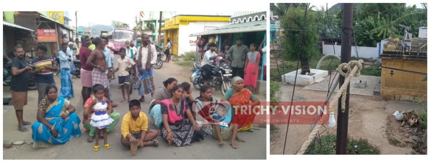 இதற்கு மாறாக மின்சார வாரியம் அந்த மின்கம்பத்தை ஒரு கயிற்றினால் இழுத்து கட்டி வைத்துள்ளனர். இந்த சேதமடைந்த மின் கம்பத்தை உடனடியாக அகற்றி புதிய மின்கம்பம் அமைக்க வேண்டும் என அப்பகுதி பொதுமக்கள் திடீர் சாலை மறியல் போராட்டத்தில் ஈடுபட்டனர்.