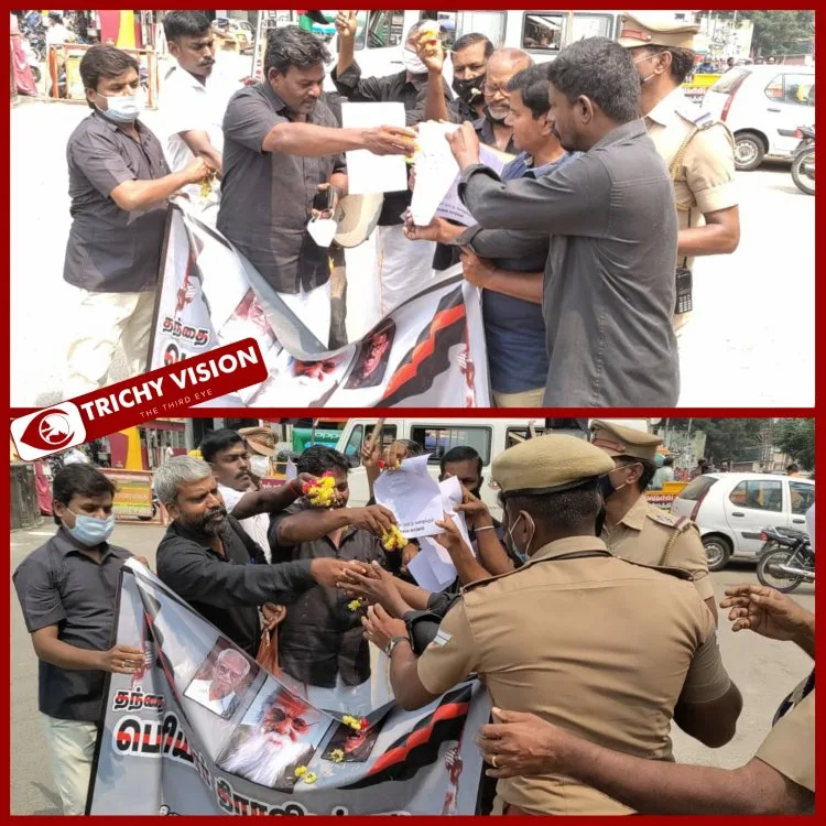 பெட்ரோல் மற்றும் டீசல் விலையை உயர்த்தும் மத்திய அரசை கண்டித்து திருச்சி மத்திய பேருந்து நிலையம் அருகே பெரியார் திராவிட கழகத்தினர் போராட்டத்தில் ஈடுபட்டனர். சுமார் 10க்கும் மேற்பட்டோர் கலந்துக்கொண்ட இந்த போராட்டத்தில் இந்திய பிரதமர் நரேந்திரமோடியின் படத்திற்கு மலர்தூவி “சாதனை செம்மல்” பட்டம் வழங்குவது போல் நூதனமான போராட்டம் நடைபெற்றது.