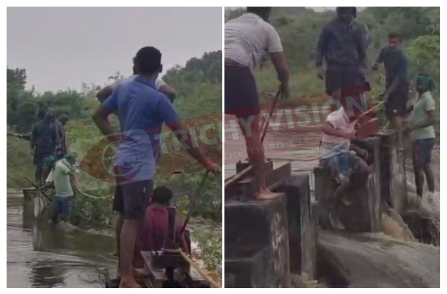 திருச்சி மாவட்டம், மணப்பாறையை அடுத்த கண்ணுடையான்பட்டி அருகே மான்பூண்டி ஆற்றின் குறுக்கே தடுப்பணை உள்ளது. அந்த தடுப்பணை அருகே மிதமாகச் சென்ற குறைந்த அளவு நீரில் விராலிமலைப்பகுதியைச் சேர்ந்த 6 பேர் மீன்பிடித்துக் கொண்டிருந்தனர்.