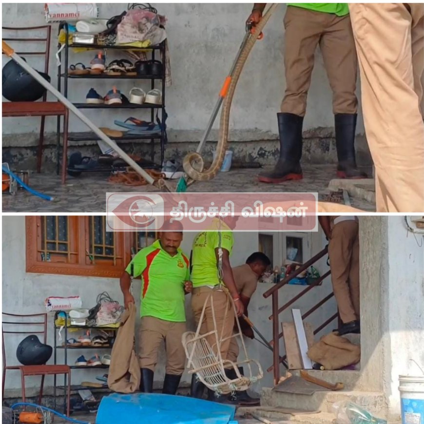 வீட்டின் கதவு மூடப்பட்டிருந்த நிலையில் வீட்டின் முன் உள்ள ஒரு பகுதியில் வளர்ப்பு நாய் ‘டைகர்’ தொடர்ந்து ஒதுங்கிக் குறைக்கும் வண்ணம் இருந்ததய் ராஜராஜனின் மனைவி கவனித்து விரைந்து சென்று பார்த்தபோது, அந்த மூலை பகுதியில் பாம்பு பதுங்கியிருப்பது தெரிந்தது. உடனடியாக, அவர் தீயணைப்பு துறைக்கு தகவல் அளித்தார்.