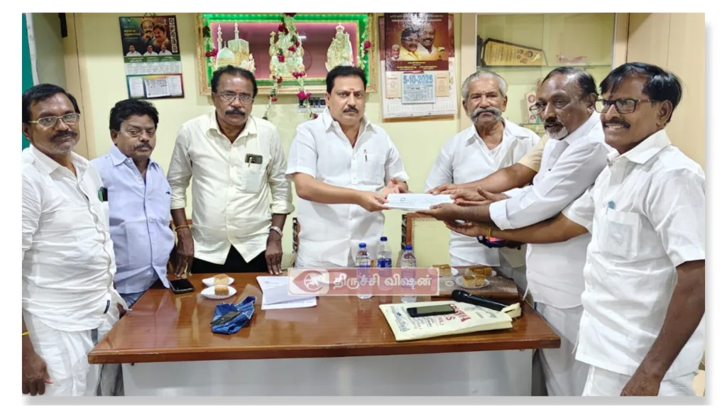 திருச்சி முக்கிய பகுதியில் வார சந்தைக்கு தடை விதிக்க மனுதிருச்சி எடைமலைப்பட்டி புதூர் பகுதியில் வார சந்தையை தடை செய்ய கோரி வணிகர் நல ஒற்றுமை சங்க சார்பாக நேற்று நடைபெற்ற கூட்டத்தில் மாநிலத் துணைத் தலைவர் திரு எஸ். கந்தன் மாவட்ட தலைவர் ஸ்ரீதர் மாவட்ட செயலாளர் செந்தில் பாலு மாவட்ட பொருளாளர் தங்கராஜ் ஆகியோரிடம் கோரிக்கை மனு அளித்தனர்.