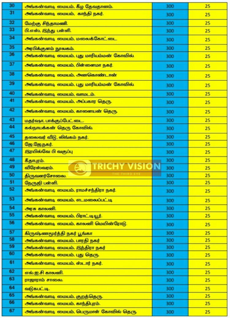 திருச்சி மாநகரில் இன்று (12.:01.2022) கோவிசீல்டு 28500, கோவாக்சின் 2375 என மொத்தம் 30,875 தடுப்பூசிகள் போடப்படும் என மாநகராட்சி நிர்வாகம் தெரிவித்துள்ளது.