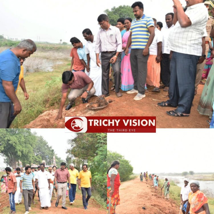 இதைத் தொடர்ந்து செய்தியாளர்களுக்கு பேட்டியளித்த மாவட்ட ஆட்சியர்…… திருச்சியில் உள்ள குளங்களில் கருவேல மரங்களை அகற்றும் விதமாகவும், நிலத்தடி நீர்மட்டத்தை சேமித்து வைக்கும் பொழுது குளங்கள் கரையோரங்களில் பனை விதைகள் நடும் பணி தொடர்ந்து நடைபெற்று வருகிறது. இதன் ஒரு பகுதியாக ஷைன் திருச்சி என்ற தன்னார்வ அமைப்புடன் மாவட்ட நிர்வாகம் இணைந்து பாகனூர் கிராமத்தில் உள்ள குளத்தில் ஐந்தாயிரம் பனை விதைகள் நடும் பணி தொடங்கி வைக்கப்பட்டுள்ளது.