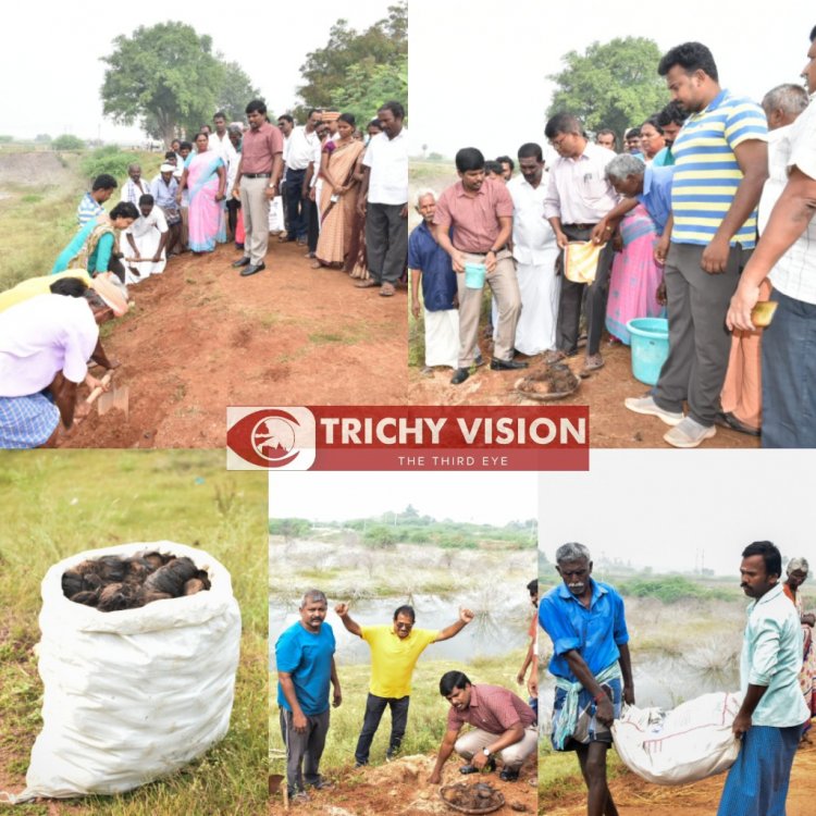 இதைத் தொடர்ந்து செய்தியாளர்களுக்கு பேட்டியளித்த மாவட்ட ஆட்சியர்…… திருச்சியில் உள்ள குளங்களில் கருவேல மரங்களை அகற்றும் விதமாகவும், நிலத்தடி நீர்மட்டத்தை சேமித்து வைக்கும் பொழுது குளங்கள் கரையோரங்களில் பனை விதைகள் நடும் பணி தொடர்ந்து நடைபெற்று வருகிறது. இதன் ஒரு பகுதியாக ஷைன் திருச்சி என்ற தன்னார்வ அமைப்புடன் மாவட்ட நிர்வாகம் இணைந்து பாகனூர் கிராமத்தில் உள்ள குளத்தில் ஐந்தாயிரம் பனை விதைகள் நடும் பணி தொடங்கி வைக்கப்பட்டுள்ளது.