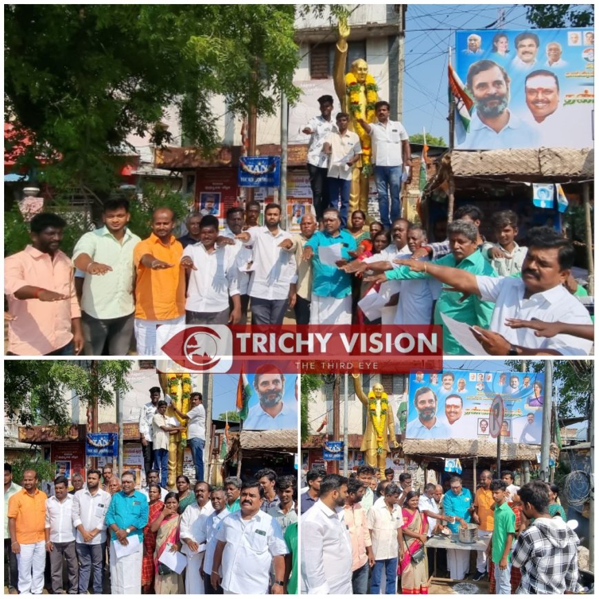 ஜங்ஷன் கோட்டத் தலைவர் பிரியங்கா பட்டெல் முன்னிலையில் மாலை அணிவித்து மரியாதை செலுத்தப்பட்டது. அது சமயம் தீவிரவாத எதிர்ப்பு உறுதி மொழியும் எடுத்து கொள்ளப்பட்டது. இந்த நிகழ்வில் மாநகர மாவட்ட துணைத் தலைவர் ஜி முரளி, சிறுபான்மை பிரிவு பஜார் மைதீன், திருச்சி கிழக்கு தொகுதி இளைஞர் காங்கிரஸ் தலைவர் முஹம்மது ரஃபி,