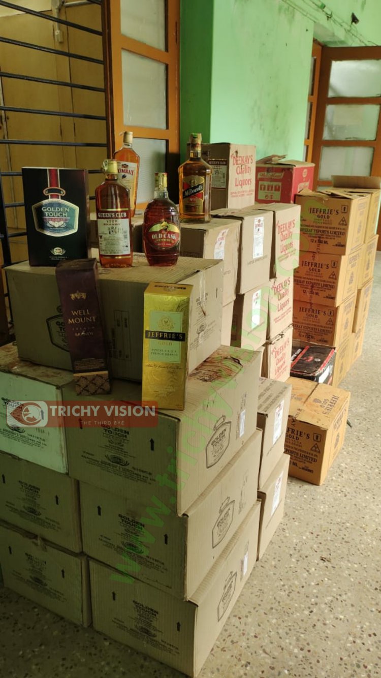 திருச்சி காந்தி மார்க்கெட் பகுதியில் இருந்து மினி லோடு வேனில் ஒன்று நிறுத்தப்பட்டிருந்தது. சந்தேகத்துக்குரிய அந்த வேனை காந்தி மார்க்கெட் காவல்துறையினர் சோதனை நடத்தினர். வேனின் மேலே செங்கல்களை அடுக்கி வைத்து தார்பாய் போட்டு மூடப்பட்டிருந்தது. சந்தேகமடைந்த போலீசார் செங்கல் கல்லை அகற்றி கீழே இருந்த அட்டைப் பெட்டியை பிரித்து பார்த்தபோது அதில் மதுபானங்கள் இருப்பது தெரியவந்தது. உடனடியாக வாகனத்தை காந்தி மார்க்கெட் காவல் நிலையத்திற்கு கொண்டு சென்றனர். வாகனத்தை கொண்டு வந்தவர்கள் அங்கிருந்து தப்பி சென்றனர்.