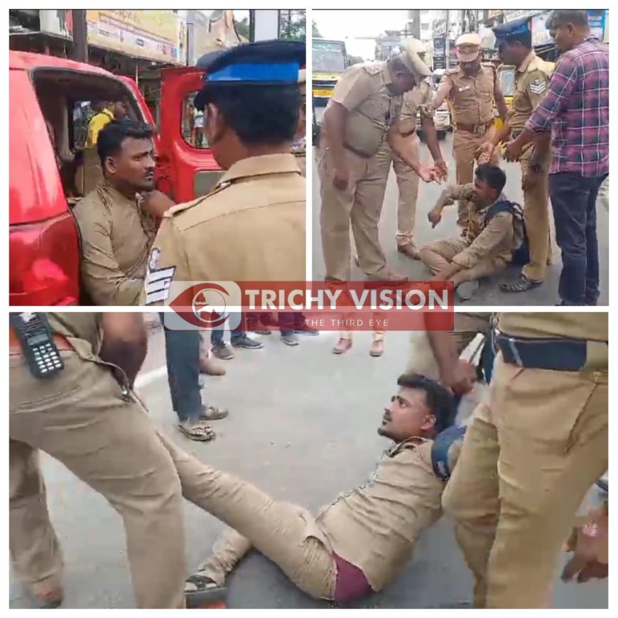 தமிழகத்தில் பூரண மதுவிலக்கை அமல்படுத்த வேண்டும் எனக்கோரி திருச்சி மத்திய பேருந்து நிலையம் அருகில் மனிதநேய மக்கள் கட்சியினர் கண்டன ஆர்ப்பாட்டம் நடத்தினர். அப்போது வாலிபர் ஒருவர் குடிபோதையில் சாலையை மறித்து நின்று கொண்டிருந்தார்.