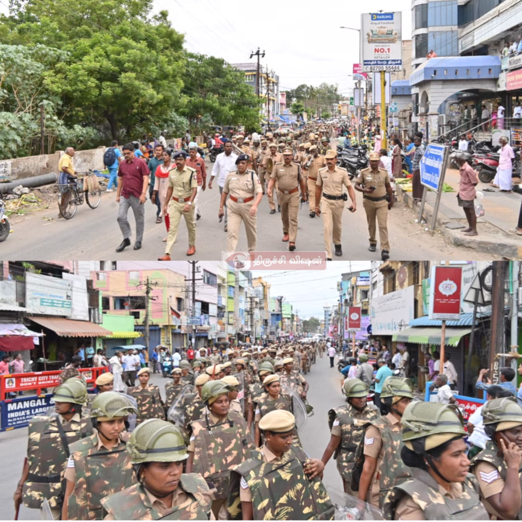 அதன்படி நேற்று 26.08.2025-ந்தேதி காலை அரியமங்கலம் காவல் நிலைய எல்லைக்குட்பட்ட பகுதிகளிலும், மாலை உறையூர் காவல் நிலைய எல்லைக்குட்பட்ட பகுதிகளிலும் கொடி அணிப்பு நடத்தப்பட்டது.