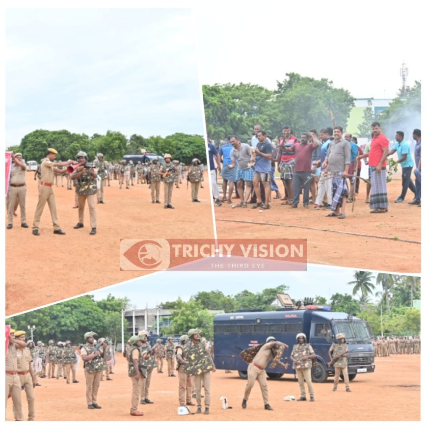 திருச்சி மாநகர கே.கே.நகர் ஆயுதப்படை மைதானத்தில் சட்டம் & ஒழுங்கு, குற்றப்பிரிவு, போக்குவரத்து மற்றும் ஆயுதப்படை காவல் அதிகாரிகள் மற்றும் ஆளினர்கள் என 575 நபர்களை கொண்டு தடுப்பு ஒத்திகை நிகழ்ச்சி நடத்தப்பட்டது.