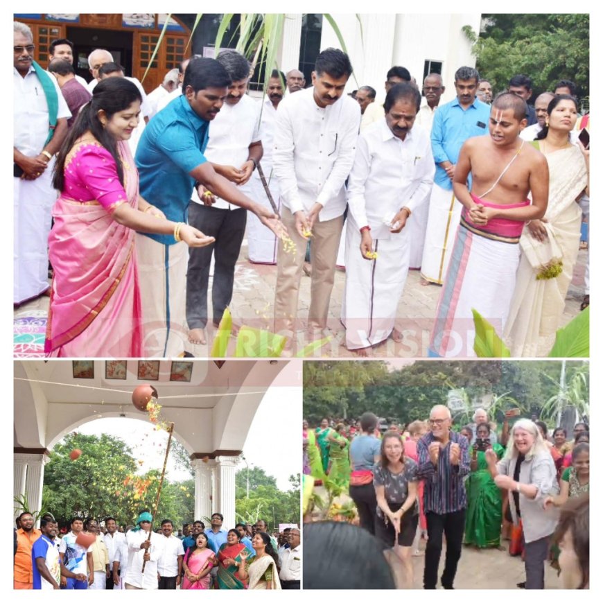 மேலும் மாவட்ட ஆட்சியர் அவரது மனைவி மற்றும் அருண் நேரு, துரை வைகோ உள்ளிட்டோர் உற்சாகமாக பொங்கல் வைத்து கொண்டாடி மகிழ்ந்தனர். அரசுத்துறை உயர் அலுவலர்கள் மற்றும் பணியாளர்கள் கலந்து கொண்டனர்.