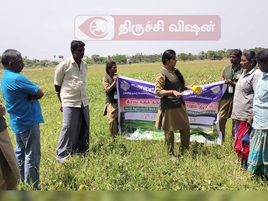 திருச்சி மாவட்டம் மண்ணச்சநல்லூர் வட்டாரத்திற்கு தனலட்சுமி சீனிவாசன் வேளாண் கல்லூரியின் இறுதியாண்டு மாணவிகள் கிராம வேளாண் பணி அனுபவ பயிற்சி திட்டத்தின் கீழ் விவசாயிகளுடன் களப்பணியாற்ற வந்துள்ளனர். அதன் ஒரு பகுதியாக திருவாசி கிராமத்தில் உளுந்து பயிரில் மஞ்சள் ஒட்டு பொறியின் முக்கியத்துவம் குறித்து மாணவிகள் செயல்முறை கலந்தாய்வை நடத்தினர்.