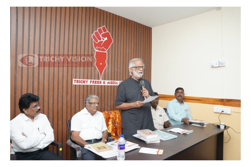 திருச்சி டிஸ்ட்ரிக்ட் பிரஸ் & மீடியா கிளப் அலுவலகத்தை திறந்து வைத்து சிறப்புரையாற்றிய மூத்த ஆசிரியர் விஜயசங்கர்… தொடக்கக்கல்வி முதல் உயர்கல்வி வரையில் தமிழ் வழியில் பயின்று, ஆங்கில பத்திரிகையின் ஆசிரியாக உயர்வது என்பது அசாத்தியமானது. அதுவும், இந்திய பத்திரிகை துறையில் தனித்த அடையாளத்தோடு இயங்கி வரும் ப்ரண்ட்லைன் ஆங்கில பத்திரிகையில், தான் பணியாற்றிய காலத்தில் அரசியல் சூடு தணியாத பல கட்டுரைகளை, இந்திய அரசியலையும் தமிழகத்தை நோக்கி திரும்பிப்பார்க்க வைத்த பல திருப்பங்களையும் அதன் ஆசிரியராக இருந்து நிகழ்த்திக் காட்டியவர்.