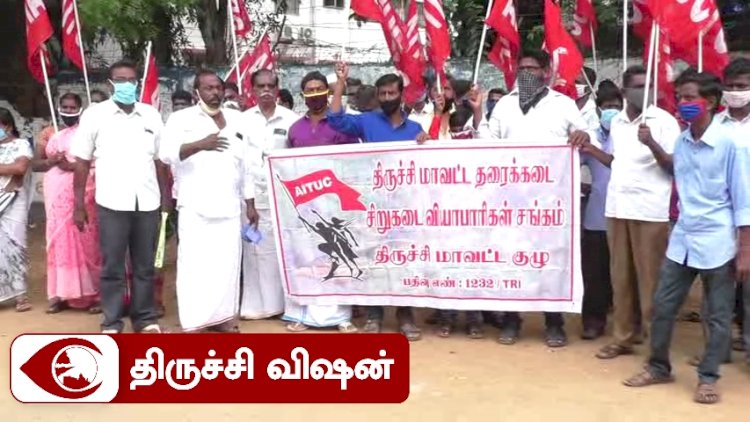 ஏற்கனவே கொரோனா ஊரடங்கு காரணமாக வியாபாரிகளின் வாழ்வாதாரம் பாதிக்கப்பட்டுள்ள நிலையில், தற்போது தீபாவளி உள்ளிட்ட பண்டிகை காலம் வருவதால் தங்களுக்கான அடிப்படை வசதிகளை செய்து தர வேண்டும் என்றும், தங்களின் வாழ்வாதாரத்தை பாதுகாக்க வலியுறுத்தியும் திருச்சி மாவட்ட தரைக்கடை மற்றும் சிறுகடை வியாபாரிகள்(AITUC) சங்கத்தினர் குடும்பத்துடன் வந்து திருச்சி மாவட்ட ஆட்சியர் அலுவலகத்தில் போராட்டத்தில் ஈடுபட்டனர்.