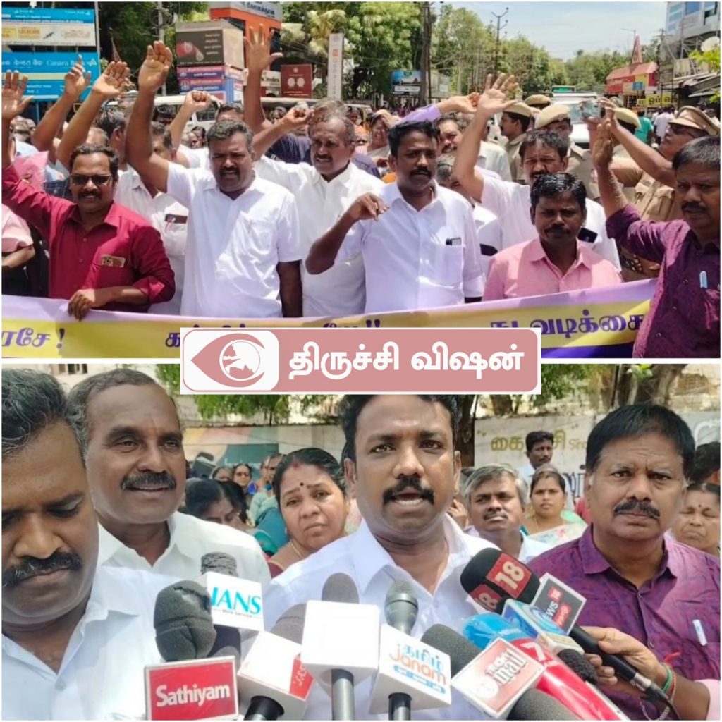 தமிழ்நாடு தொடக்கக் கல்வி ஆசிரியர் இயக்கங்களின் கூட்டு நடவடிக்கை குழு சார்பில் திருச்சி மாவட்ட ஆட்சியர் அலுவலகம் முன்பு இன்று மறியல் போராட்டம் நடைபெற்றது.