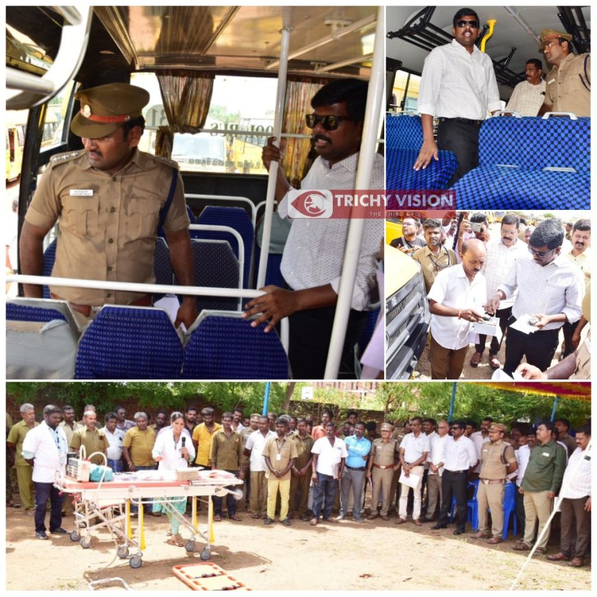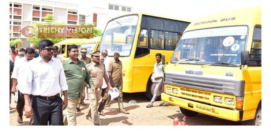 திருச்சி மாவட்டம் நம்பர் 1 டோல்கேட் அடுத்து கூத்தூர் விக்னேஷ் வித்யாலயா பள்ளியில் இன்று மாவட்ட ஆட்சியர் பிரதீப்குமார் முன்னிலையில் 168 பள்ளிகளைச் சேர்ந்த 816 வாகனங்கள் பரிசோதனைக்கு உட்படுத்தப்பட்டது.