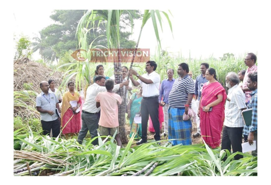 திருச்சிராப்பள்ளி மாவட்டம், திருவளர்சோலை பகுதியில் கரும்பு பயிரிட்டுள்ள விவசாயிகளின் தோட்டத்திற்கு நேரடியாக சென்ற மாவட்ட ஆட்சித்தலைவர் கரும்பின் உயரம், தரம் ஆகியவற்றை பார்வையிட்டு குடும்ப அட்டைதாரர்களுக்கு பொங்கல் பரிசு தொகுப்பு வழங்குவதற்காக பொங்கல் கரும்பு கொள்முதலை தொடங்கி வைத்தார்.