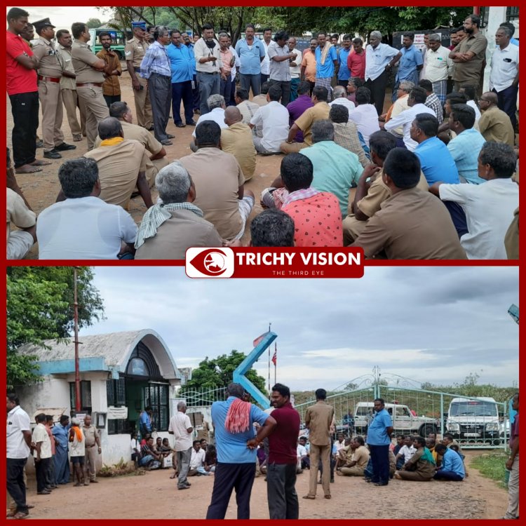 திருச்சி மணப்பாறை அடுத்த துவரங்குறிச்சி அரசு போக்குவரத்து கழக பணிமனையில், மேலாளர் தொழிலாளர்கள் மீது அடக்குமுறையை கையாளுவதாகவும், மன உளைச்சலுக்கு ஆளாக்குவதாகவும் கூறி பேருந்துகளை இயக்க மறுத்து தொழிலாளர்கள் பணிமனை முன் அமர்ந்து தர்ணாவில் ஈடுபட்டு வருகின்றனர்.