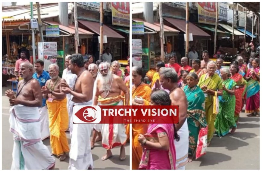 திருமால் அடியார்கள் குழாமை சேர்ந்த 500-க்கும் மேற்பட்டோர் ஸ்ரீரங்கம் கோவிலின் உள்ளே திடீர் போராட்டத்தில் ஈடுபட்டு உள்ளனர். ஸ்ரீரங்கம் கோவிலில் ரங்கா ரங்கா கோபுரம் முன்பு திருவண்ணாமலை, விழுப்புரம், கள்ளக்குறிச்சி, கடலூர், விருதுநகர், திருச்சி, உள்ளிட்ட பகுதிகளில் இருந்து வந்திருந்த ஆண்கள், பெண்கள் என 500க்கும் மேற்பட்டோர் ஜால்ரா வாசித்து போராட்டத்தில் ஈடுபட்டனர்.