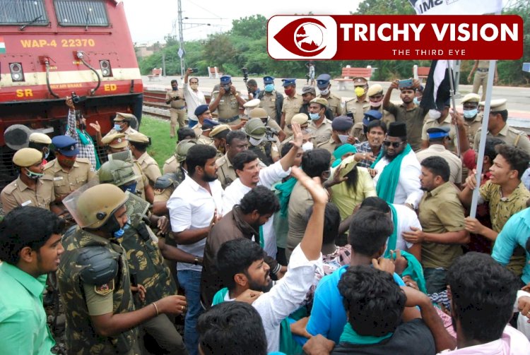 மத்திய அரசு கொண்டு வந்துள்ள புதிய வேளாண் சட்டங்களுக்கு எதிர்ப்பு தெரிவித்து மனிதநேய மக்கள் கட்சியினர் 150க்கும் மேற்பட்டோர் திருச்சி கோட்டை ரயில் நிலையத்தை முழுவதும் முற்றுகையிட்டு போராட்டம் நடத்த போவதாக அறிவித்திருந்தனர்.
