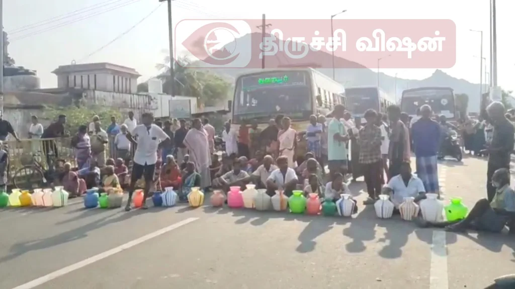 திருச்சி மாவட்டம், துறையூர் அருகே உள்ள கீரம்பூர் ஊராட்சிக்குட்பட்ட பகுதியில் அமைந்துள்ள காந்திநகர் காலணியில் கடந்த சில மாதங்களாக குடிநீர் தட்டுப்பாட்டை எதிர்த்து பொதுமக்கள் காலி குடங்களுடன் சாலையில் அமர்ந்து மறியல் போராட்டம் நடைபெற்றது,