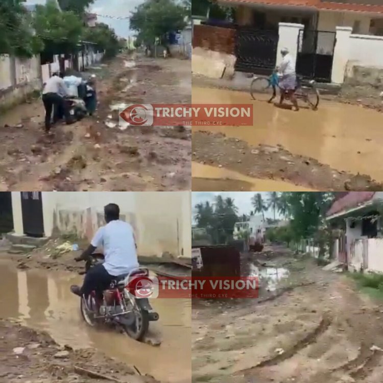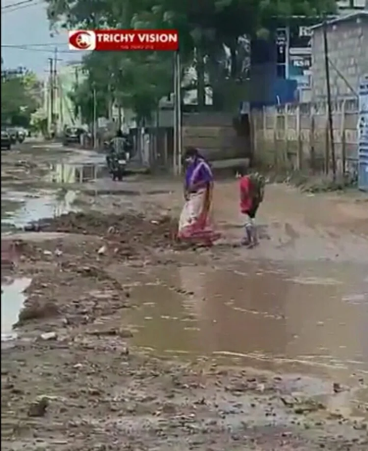 இதன் ஒரு பகுதியாக திருச்சி உறையூர், ராமலிங்க நகர் முதல் தெரு கடைசியில் உள்ள யுவர்ஸ் காலனி, எம்.எம் லோட்டஸ் நகர் செல்லும், சாலையில் மிக மோசமான நிலையில் காணப்படுகிறது. வாகன ஓட்டிகள் மற்றும் நடந்து செல்லும் பொதுமக்கள் அச்சத்துடன் செல்ல வேண்டியுள்ளது. மேலும் சேறும், சகதியுமாக உள்ள இந்த சாலையில் கடக்கும் வாகனங்கள் சேற்றில் புதைந்து கிழே விழும் நிலை ஏற்படுகிறது.