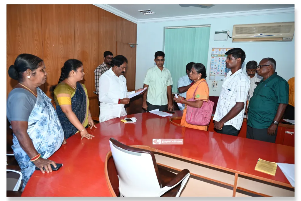 திருச்சிராப்பள்ளி மாநகராட்சி மேயர் மு.அன்பழகன், அவர்கள் தலைமையில் இன்று (13.10.2025) திங்கட்கிழமை மாநகராட்சி மேயர் அலுவலக கூட்ட அரங்கில் நடைபெற்ற பொதுமக்கள் குறைதீர்க்கும் கூட்டத்தில் மாநகரின் பல்வேறு பகுதிகளைச் சேர்ந்தவர்கள் கோரிக்கை மனுக்களை மேயரிடம் அளித்தார்கள்.