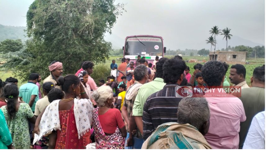 திருச்சி மாவட்டம் மணப்பாறை அருகே மருங்காபுரி ஊராட்சி ஒன்றியம் எண்டபுளி கிராமத்தில் காலனி தெருவில் சுமார் 50 குடும்பத்துடன் வசித்து வருகின்றனர். தங்கள் குடியிருப்புக்கு செல்வதற்கு சாலை அமைத்து தரக்கோரி மாவட்ட ஆட்சியர் அலுவலகத்தில் பலமுறை மனு கொடுத்தும் உரிய நடவடிக்கை எடுக்கவில்லை. இதனை கண்டித்து கண்ணூத்து முதல் துவரங்குறிச்சி செல்லும் சாலை எண்டபுள்ளியில் அரசு பேருந்தை மறித்து பொதுமக்கள் சாலை மறியலில் ஈடுபட்டனர்.