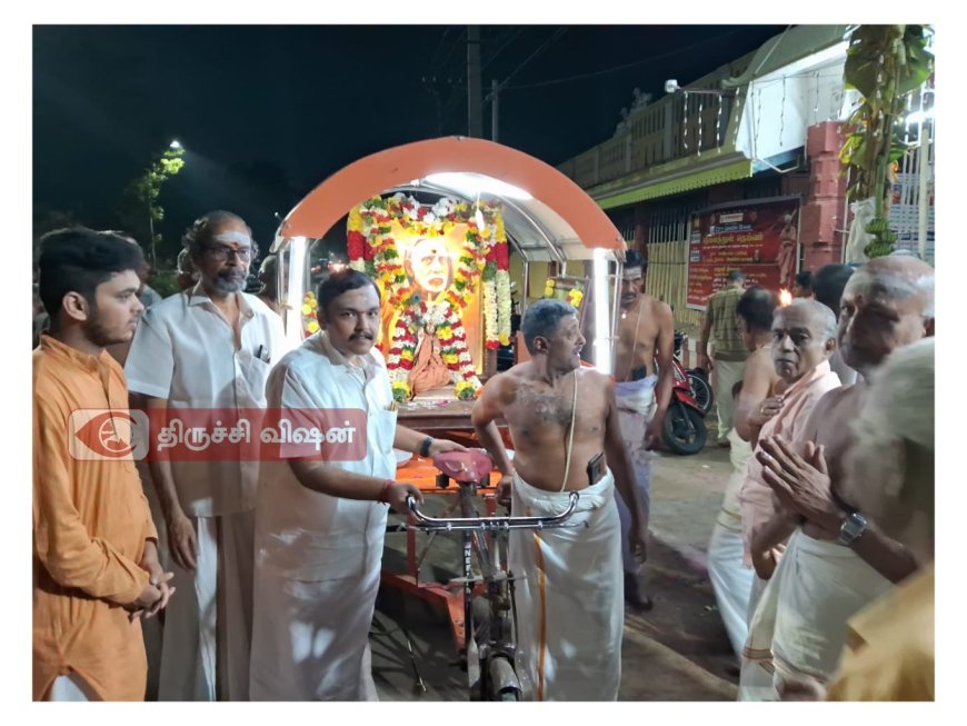 ஐப்பசி மாச அனுஷ அவதார தினத்தை முன்னிட்டு திருச்சி திருவானைக்காவல் வடக்கு ரத வீதியில் அமைந்துள்ள காஞ்சி சங்கர மடத்தில் பூஜ்யஸ்ரீ மஹா பெரியவாவின் விக்ரகம் மற்றும் படம் மலர்களால் அலங்கரிக்கப்பட்டு நாதஸ்வரம், விஷ்ணு சஹஸ்ரநாமம் பாராயணம், வேத கோஷம் மற்றும்