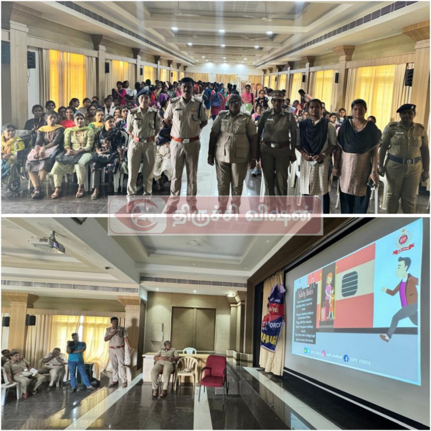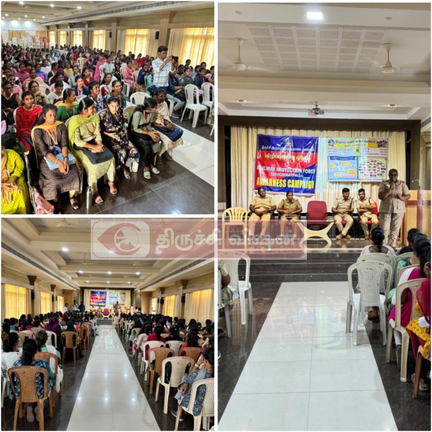மற்றும் உதவி ஆணையர் திரு. பிரமோத் நாயர் ஆகியோர்களது உத்தரவின் பேரில் திருச்சி RPF இன்ஸ்பெக்டர் திரு. K. P. செபாஸ்டியன் மற்றும் திருச்சி GRP இன்ஸ்பெக்டர் திருமதி.மோகன சுந்தரி அவர்கள் தலைமையில் திருச்சி ஹோலி கிராஸ் கல்லூரியில் பெண்களுக்கான விழிப்புணர்வு நிகழ்ச்சி நடைபெற்றது.