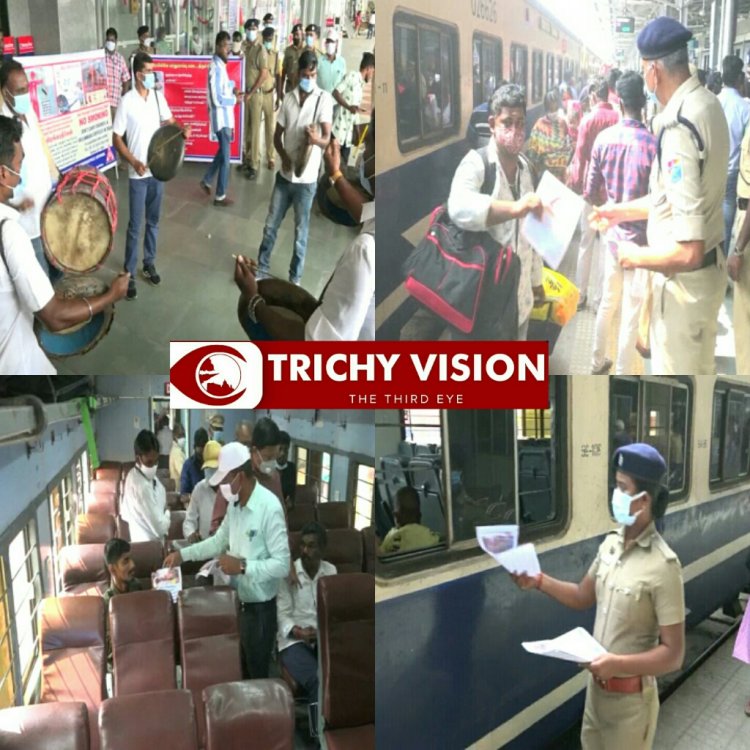 மேளங்கள் முழங்க பதாகைகளை ஏந்தியபடி நடைபாதையில் பேரணியாகச் சென்று பயணிகளிடம் பாதுகாப்பான ரெயில்பயணம் மேற்கொள்வது குறித்தும் விழிப்புணர்வு ஏற்படுத்தினர். வருடத்தில் ஒரிருமுறை இதுபோன்ற தீ விபத்து சம்பவங்கள் ரெயில்களில் நடைபெற்று வருவது வாடிக்கையாகிறது. திருச்சியில் உள்ள முக்கிய ரெயில்நிலையங்களில் இதுபோன்ற விழிப்புணர்வு நிகழ்வு தொடர்ந்து நடைபெறும் எனவும், ரெயில்பயணிகளும் பொறுப்புடன் செயல்பட வேண்டும் என தெரிவித்தனர்.