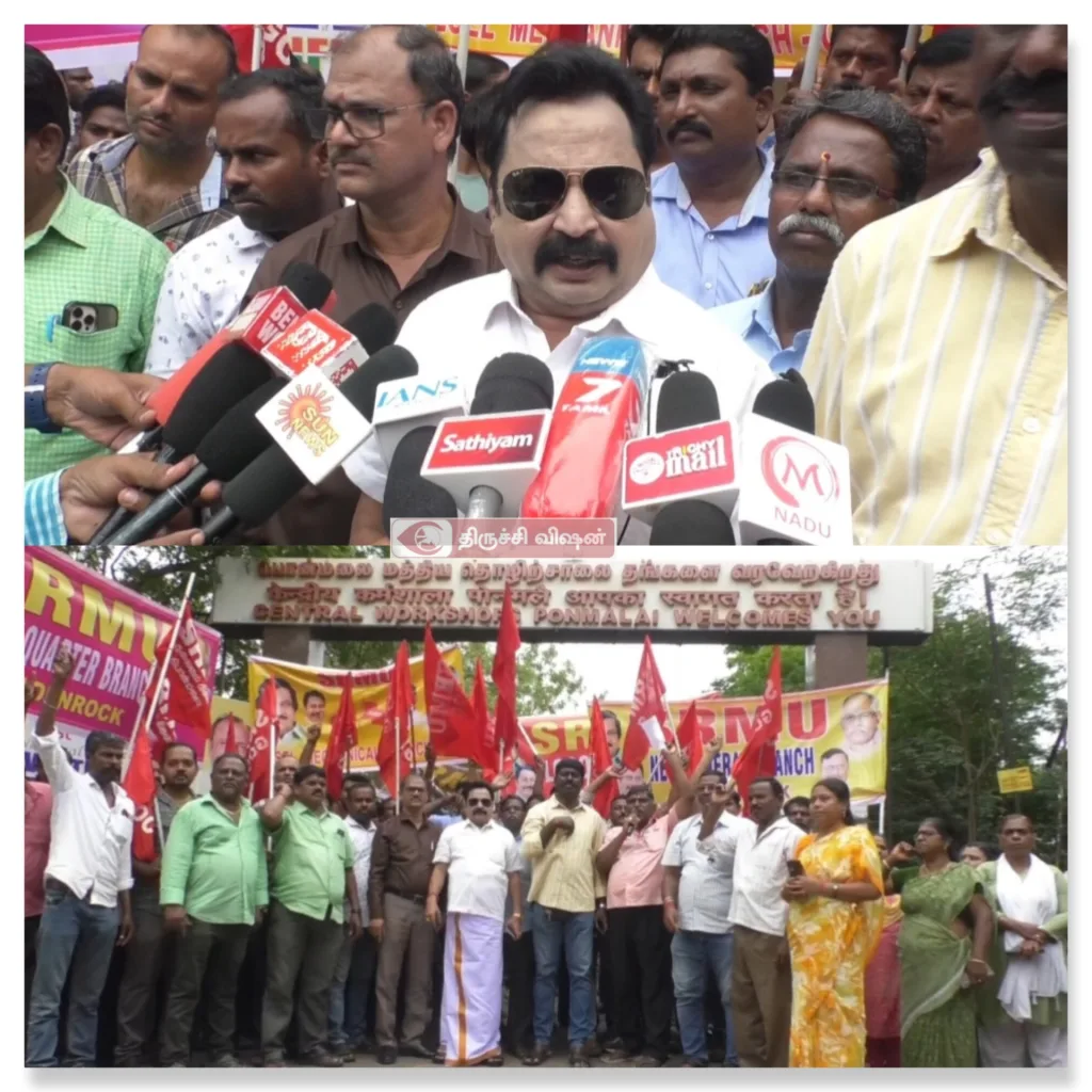 இதன் ஒரு பகுதியாக இன்று காலை திருச்சி பொன்மலை ரயில்வே ஆர்மரிகேட் முன்பு பொதுச் செயலாளர் வீரசேகரன் தலைமையில் கண்டன போராட்டம் நடைபெற்றது.