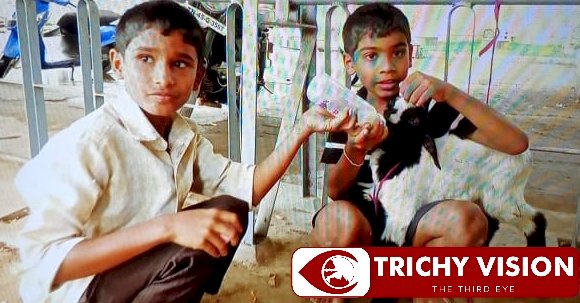 உயிருக்கு ஆபத்தான நிலையில் ரயில் ரோட்டில் நின்று இருந்த ஆட்டுக் குட்டியை மீட்டு திருச்சி சகோதரர்கள் பாலூட்டி வளர்க்கும் காட்சி நெகிழ வைத்துள்ளது.
