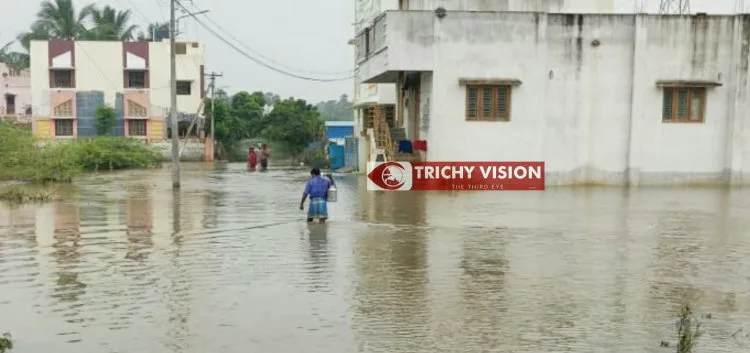 திருச்சியில் 2வது நாளாக வீடுகளை சுற்றி நிற்கும் மழைநீர் – இடுப்பளவு நீரில் கடக்கும் மக்கள்