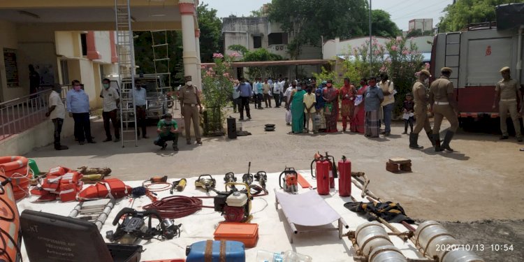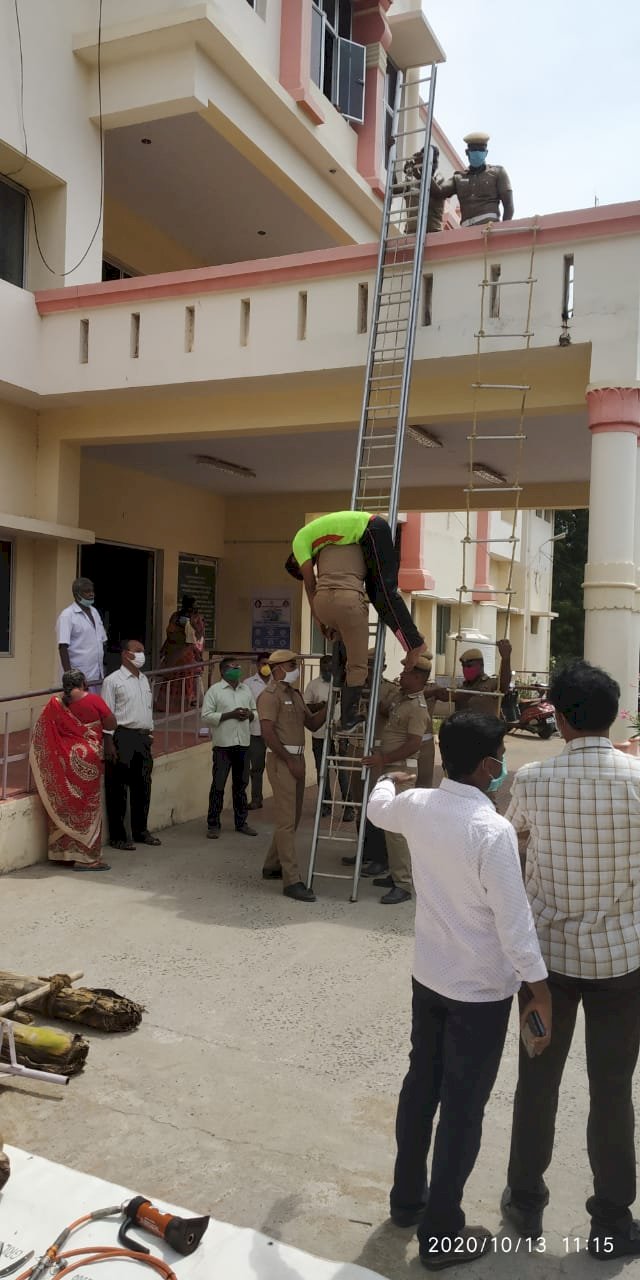 திருச்சி மாவட்ட வருவாய்த் துறை மற்றும் தீயணைப்பு துறை சார்பில் மழைக் காலங்களில் ஏற்படும் பேரிடர்களை எதிர்கொள்ளும் வகையில் திருச்சி மேற்கு வட்டாட்சியர் அலுவலகத்தில் ஒத்திகை நிகழ்ச்சி நடைபெற்றது. இதில் தீயணைப்பு நிலைய அலுவலர்கள், தீயணைப்பு வீரர்கள் மீட்பு பணிக்கான ஒத்திகை தத்துரூபமாக செய்து காட்டினர்.
