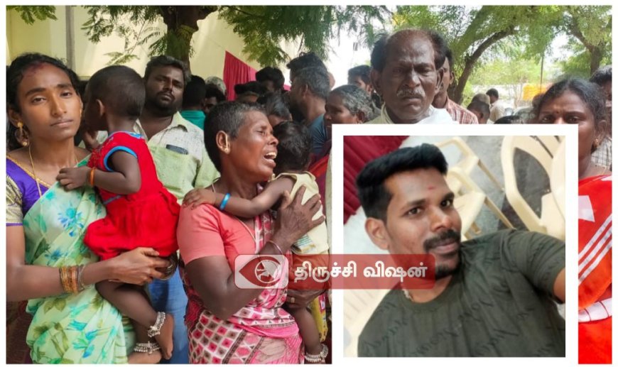 திருச்சி மாவட்டம் முசிறி அருகே பேரூர் கிராமத்தை சேர்ந்தவர் பெரியசாமி (33). இவர் தா.பேட்டை பகுதியில் உள்ள தனியார் பள்ளி ஒன்றில் ஆசிரியராக பணியாற்றி வந்தவருக்கு திருமணமாகி கிருஷ்ணவேணி ( 25) என்ற மனைவியும், பவிஷ்னா (3), என்ற மகளும், கார்த்திக்கிருஷ் (1) என்ற மகனும் உள்ளனர்.