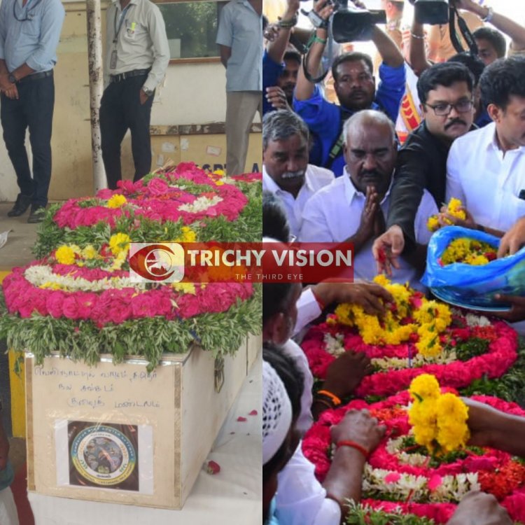 திருவாரூர் மாவட்டம், லட்சுமாங்குடியைச் சார்ந்த முத்துக்குமரன் என்பவர், குவைத் நாட்டில் பணிபுரியும் இடத்தில் இறந்தார். அவரது உடல் தமிழக அரசின் முயற்சியால் மீட்கப்பட்டு, விமானத்தின் வாயிலாக, திருச்சி விமான நிலையத்திற்கு கொண்டு வரப்பட்டது. பின்னர் நகராட்சி நிருவாகத் துறை அமைச்சர் கே.என்.நேரு, சிறுபான்மையினர் நலன் மற்றும் வெளிநாடு  வாழ் தமிழர் நலத்துறை அமைச்சர் மஸ்தான், பள்ளி கல்வித்துறை அமைச்சர் அன்பில் மகேஷ் பொய்யாமொழி, மாவட்ட ஆட்சியர் பிரதீப் குமார் ஆகியோர் மலர் வைத்து அஞ்சலி செலுத்தினர்.