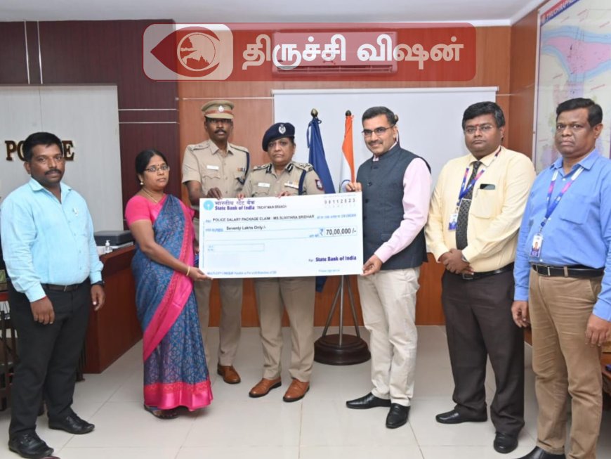 அதன்படி, நேற்று(08.11.23)-ந்தேதி, மேற்படி இறந்து போன த.கா.ஸ்ரீதர்அவர்களின் குடும்பத்தினர் திருச்சி மாநகர காவல் ஆணையர் அலுவலத்திற்கு நேரில்வந்து திருச்சி மாநகர காவல் ஆணையர் அவர்களை சந்தித்து நிவாரண தொகையானரூ.70,00,000/- (எழுபது இலட்சம்)-ஐ பெற்றுத்தரப்பட்டது. இதில் திருச்சி மாநகர துணை ஆணையர் (தெற்கு) S. செல்வகுமார், பாரத ஸ்டேட் வங்கியின் திருச்சி மண்டல துணை பொது மேலாளர் நவீன்குமார், திருச்சி துணை பொது மேலாளர் மதன், திருச்சி முதன்மை வங்கி கிளை, துணை பொது மேலாளர் பிரபாகர் பாரிக் கலந்து கொண்டார்கள். மேலும் தலைமை காவலர் ஸ்ரீதரின் குடும்பத்தினருக்கு தனது ஆறுதலை கூறியும், திருச்சி மாநகர காவல்துறை சார்பில் அனைத்து விதமான உதவிகளும் செய்து தரப்படும் என திருச்சி மாநகர காவல் ஆணையர் தெரிவித்துக்கொண்டார்.