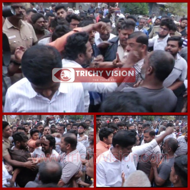 திருச்சியில் ஆக்கிரமிப்பு அகற்றம் – மாநகராட்சி உதவி ஆணையரை தள்ளி விட்டதால் பரபரப்பு – போலீசார் குவிப்பு