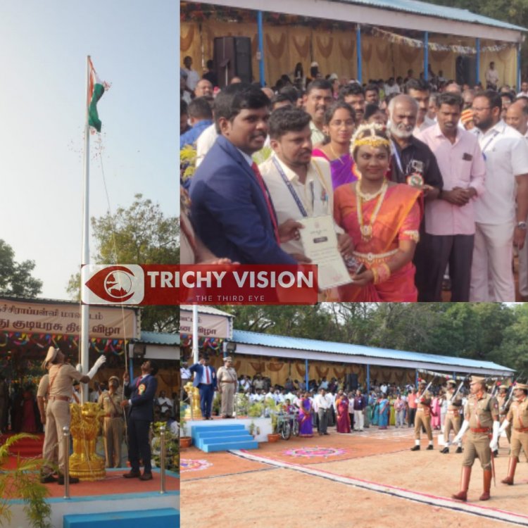நாட்டின் 74வது குடியரசு தின விழா கொண்டாட்டத்தை முன்னிட்டு திருச்சி மாவட்ட ஆயுதப்படை மைதானத்தில் மாவட்ட ஆட்சியர் பிரதீப் குமார் தேசிய கொடியை ஏற்றி வைத்து அணிவகுப்பு மரியாதையை ஏற்றுக்கொண்டார்.