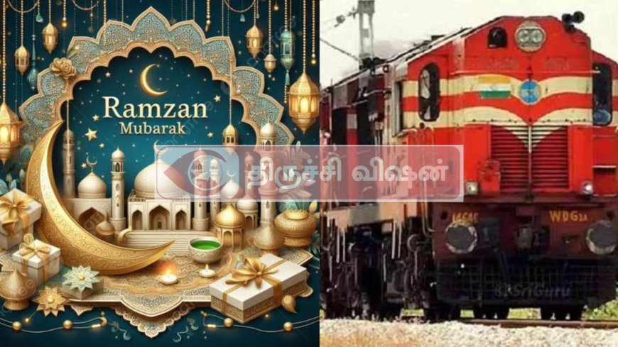 புனித ரமலான் பெருநாளை முன்னிட்டு சிறப்பு இரயில் இயக்கக் கோரிக்கை.ஒரு மாதம் முழுதும் நோன்பு இருந்து ரமலான் பண்டிகை கொண்டாடுவதற்காக சென்னை செல்லும் மக்களுக்கு பயன்படும் வகையில், மார்ச் 30 மற்றும் 31 ஆம் தேதிகளில்,திருச்சியிலிருந்து