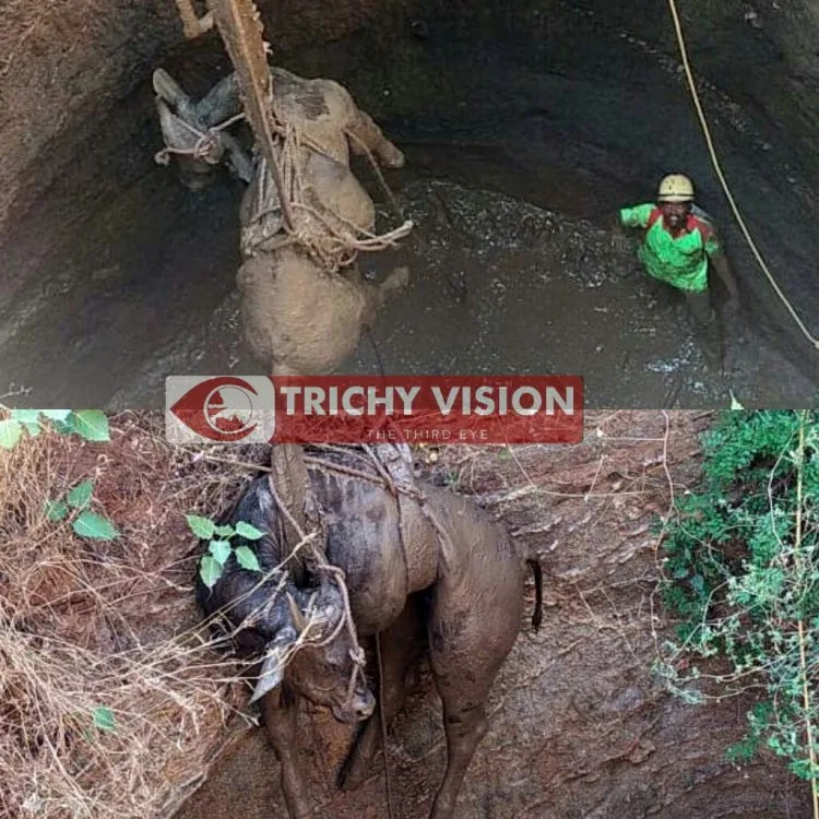 திருச்சி மாவட்டம் மணப்பாறை அருகே மருங்காபுரி ஒன்றியம் எண்டப்புளி ஊராட்சி அழகாஸ்திரிப்பட்டியை சேர்ந்த அழகாஸ்திரி மகன் பழனிச்சாமி (70). இவருக்கு சொந்தமான 50 அடி ஆழ கிணற்றில் 2 வயது மதிக்கத்தக்க காட்டெருமை ஒன்று தவறி விழுந்துள்ளது.