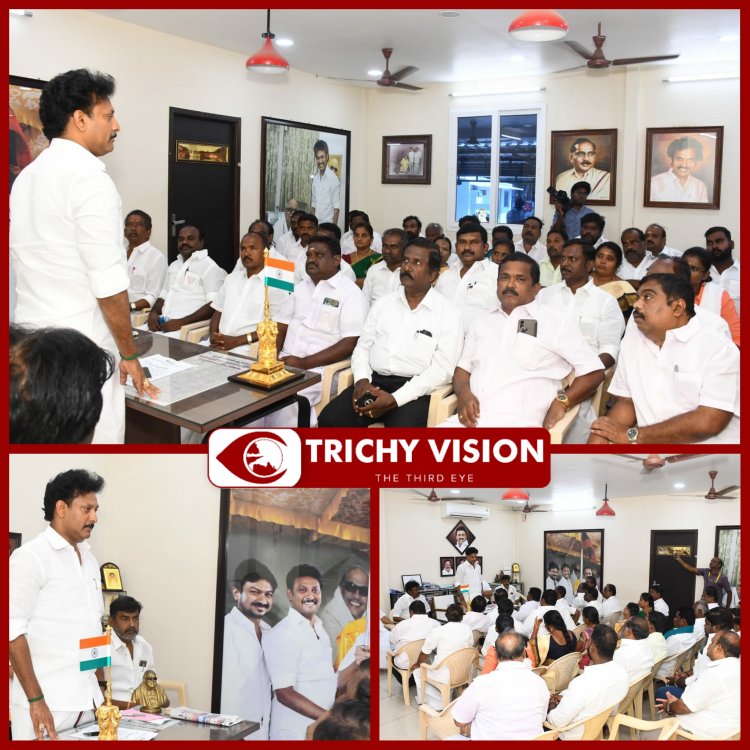 தமிழக பள்ளி கல்வி துறை அமைச்சர், தெற்கு மாவட்ட கழக பொறுப்பாளருமான, அன்பில் மகேஸ் பொய்யாமொழி தலைமையில் ஜூன் – 3ம் தேதி முத்தமிழ் அறிஞர் கலைஞரின் 99 வது பிறந்த நாள் விழாவை சிறப்பாக மாவட்ட அலுவலகத்தில் கழககொடி ஏற்றி நலத்திட்ட உதவிகள் வழங்கி கொண்டாடுவது எனவும், கழக ஆக்கப்பணிகள் குறித்தும் ஆலோசிக்கப்பட்டது.