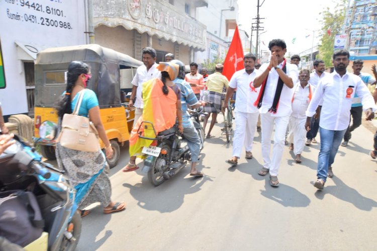 அப்போது அவருக்கு பெண்கள் ஆரத்தி எடுத்து தொண்டர்கள் மாலை அணிவித்தும் உற்சாக வரவேற்பு அளித்து பெண்கள் பூரண கும்பத்துடன்  வேட்பாளருடன் ஊர்வலமாக வந்தனர்.