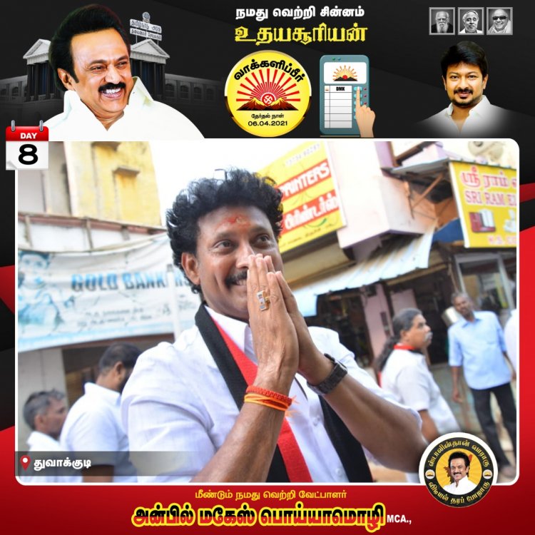 திருச்சி திருவெறும்பூர்  தொகுதியில் அதிமுக வேட்பாளர் ப.குமாருக்கு எதிராக திமுக சார்பில் போட்டியிடும் வேட்பாளர் அன்பில் மகேஷ் பொய்யாமொழி செந்தண்ணீர்புரம், சங்கிலியாண்டபுரம் ஆகிய பகுதிகளில் தீவிர வாக்கு சேகரிப்பில் ஈடுபட்டார்.