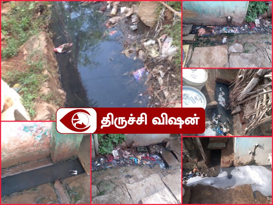 திருச்சி மாவட்டம் திருவெறும்பூர் பர்மா காலனி மாரியம்மன் கோவில் தெருவில் சாக்கடை கழிவுகள் தேங்கி கிடக்கின்றது. அதனால் தேங்கிய சாக்கடை கழிவு நீரில் கொசு, புழுக்கள் உற்பத்தியாகியும் துர்நாற்றம் வீசுவதால் நோய் தொற்று பரவும் அபாயம் ஏற்பட்டுள்ளது.