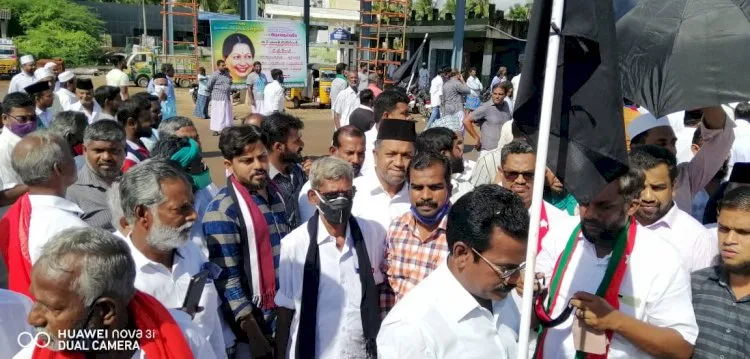 இந்த போராட்டத்துக்கு திமுக, காங்கிரஸ், மார்க்சிஸ்ட் கம்யூனிஸ்ட், எஸ்டிபிஐ, தமுமுக, முஸ்லீம் லீக், மஜக, நாம் தமிழர் கட்சி உள்ளிட்ட அனைத்து எதிர்க்கட்சிகள் ஒருங்கிணைந்து ஆதரவு தெரிவித்து உள்ளன. சாலை மறியலில் ஈடுபட்ட 300க்கும் மேற்பட்டவர்களை போலீசார் கைது செய்து மண்டபத்தில் அடைத்தனர்.