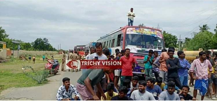 இந்த போராட்டத்தால் திருச்சி – சிதம்பரம் சாலையில் சுமார் 1 மணி நேரம் போக்குவரத்து பாதிப்பு ஏற்பட்டது.