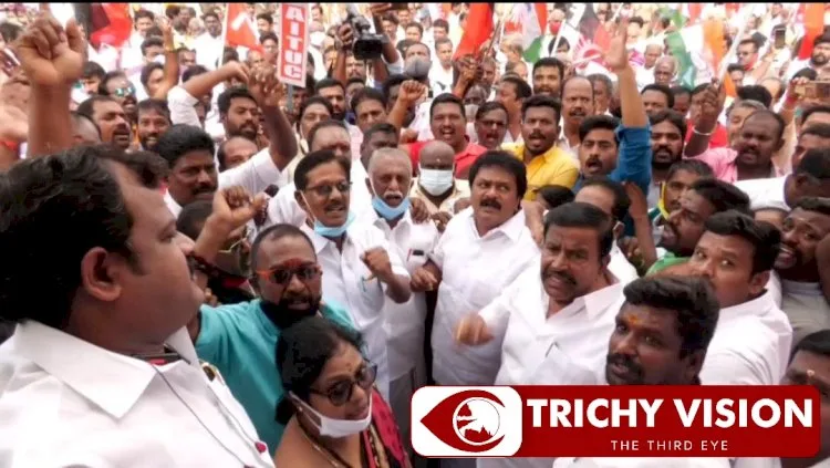 இந்நிலையில் டெல்லியில் போராடும் விவசாயிகள் இன்று நாடு முழுவதும் பந்த்திற்கு அழைப்பு விடுத்தனர்.அதனையடுத்து அந்த விவசாயிகளுக்கு ஆதரவு தெரிவித்தும் மூன்று வேளாண் சட்டங்களையும் திரும்ப பெற வலியுறுத்தியும் திருச்சி மத்திய பேருந்து நிலையத்தில் உள்ள பெரியார் சிலை அருகில் மறியல் போராட்டம் நடைப்பெற்றது.தி.மு.க,காங்கிரஸ், இடதுசாரி கட்சிகள் உள்ளிட்ட பல்வேறு கட்சிகளும்,அமைப்புகளும் இந்த மறியல் போராட்டத்தில் கலந்து கொண்டனர்.தி.மு.க முதன்மை செயலாளர் கே.என்.நேரு இந்த மறியல் போராட்டத்தில் பங்கேற்றார்.